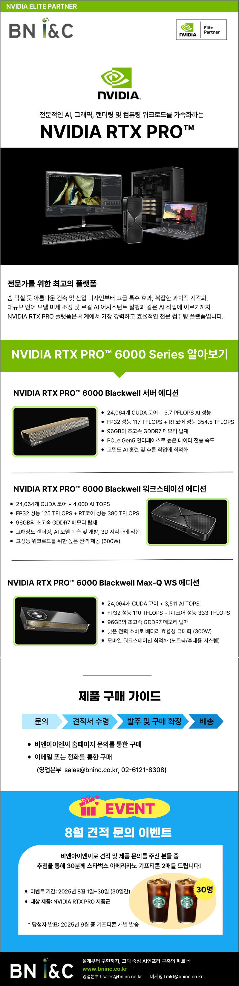 [스타벅스 커피쿠폰 이벤트] NVIDIA RTX PRO™ 6000 Series 문의하고 커피 쿠폰 받자!